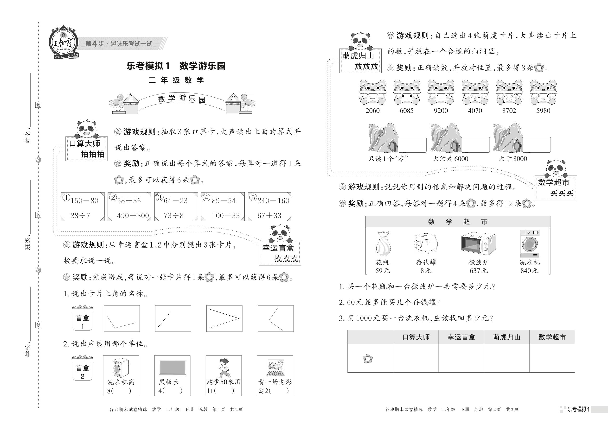 乐考模拟1 数学游乐园二年级下册数学(苏教版)