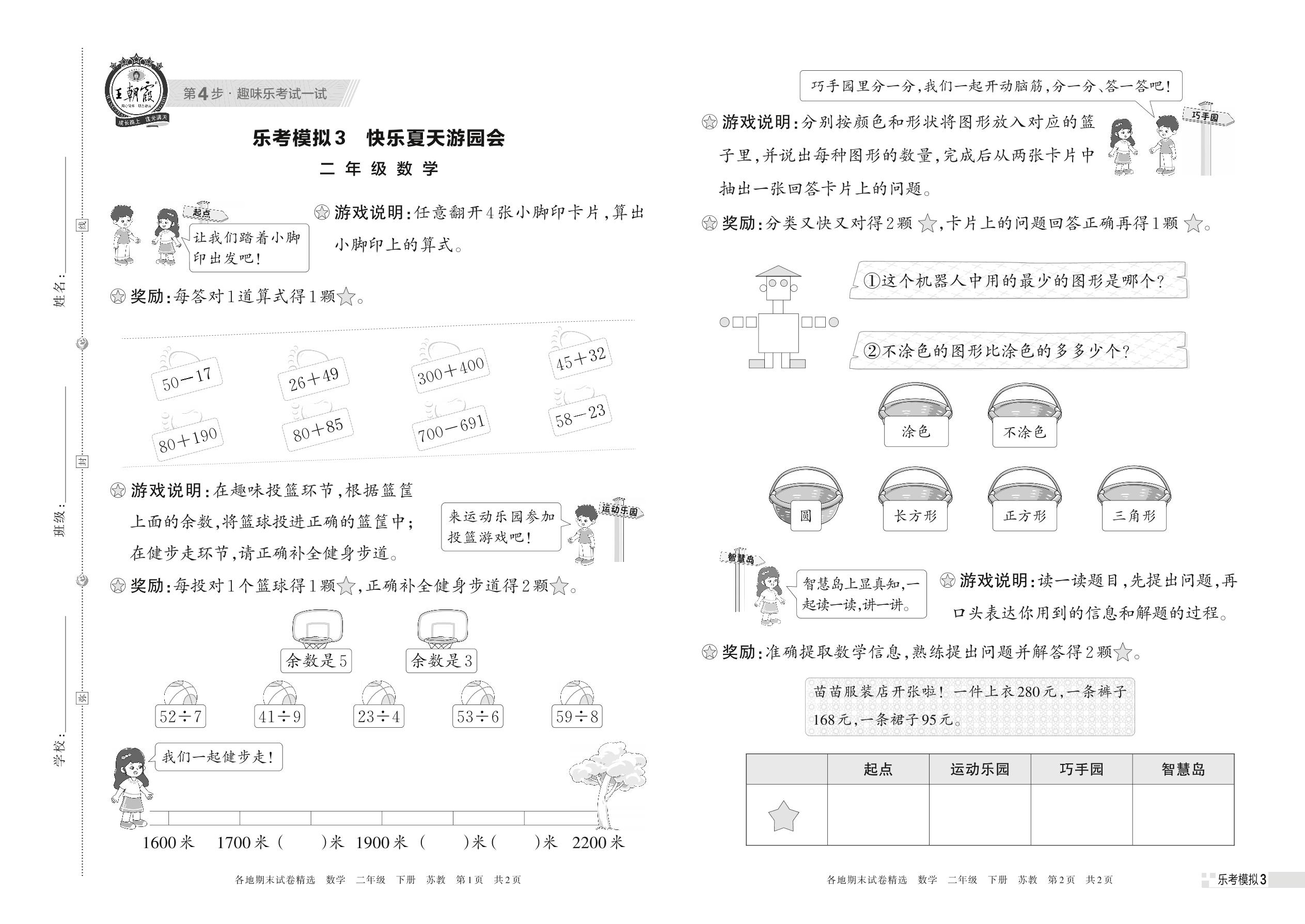 乐考模拟3 快乐夏天游园会二年级下册数学(苏教版)