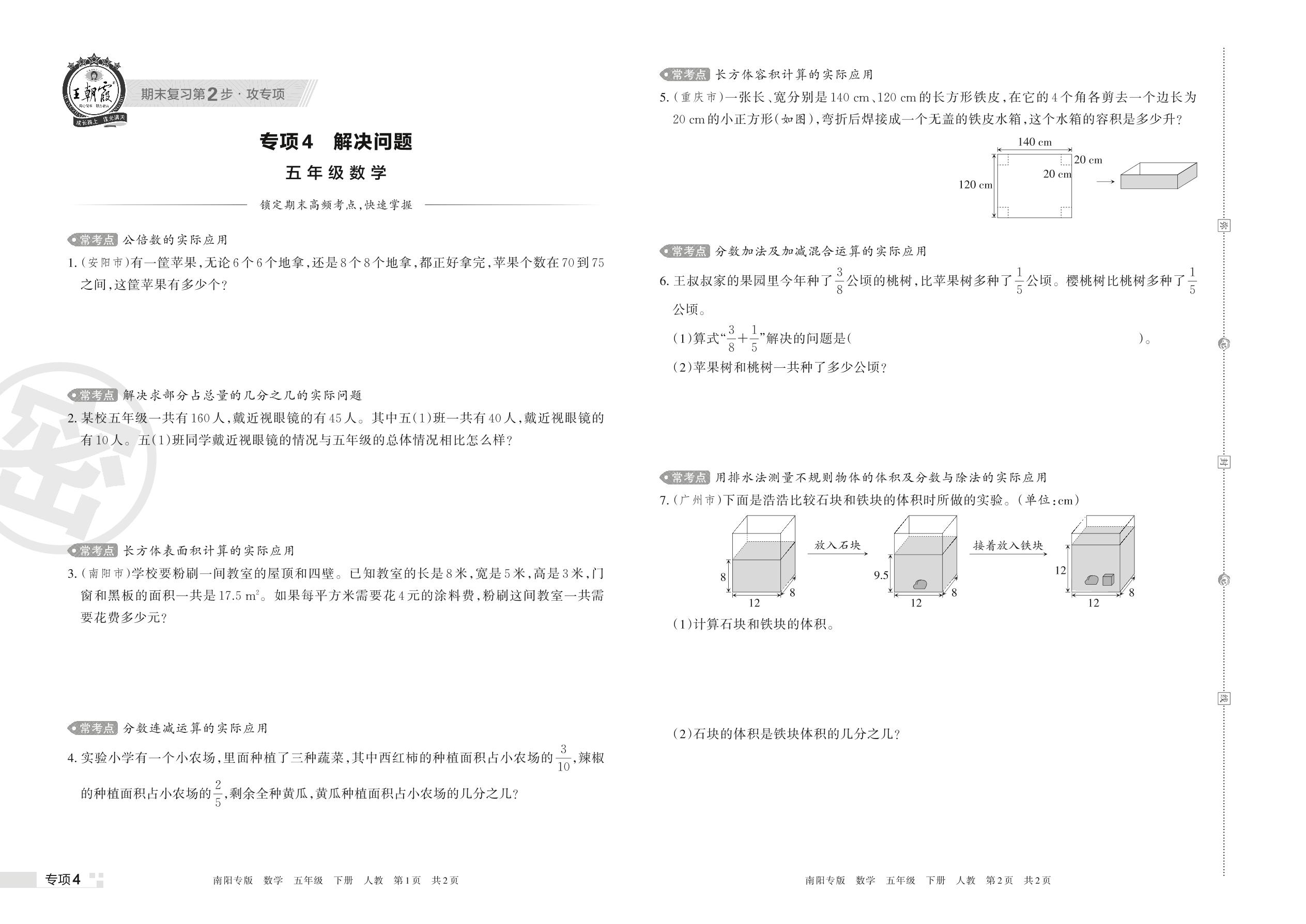 王朝霞期末专项卷——解决问题五年级下册数学(人教版)_R220408163556273【4】