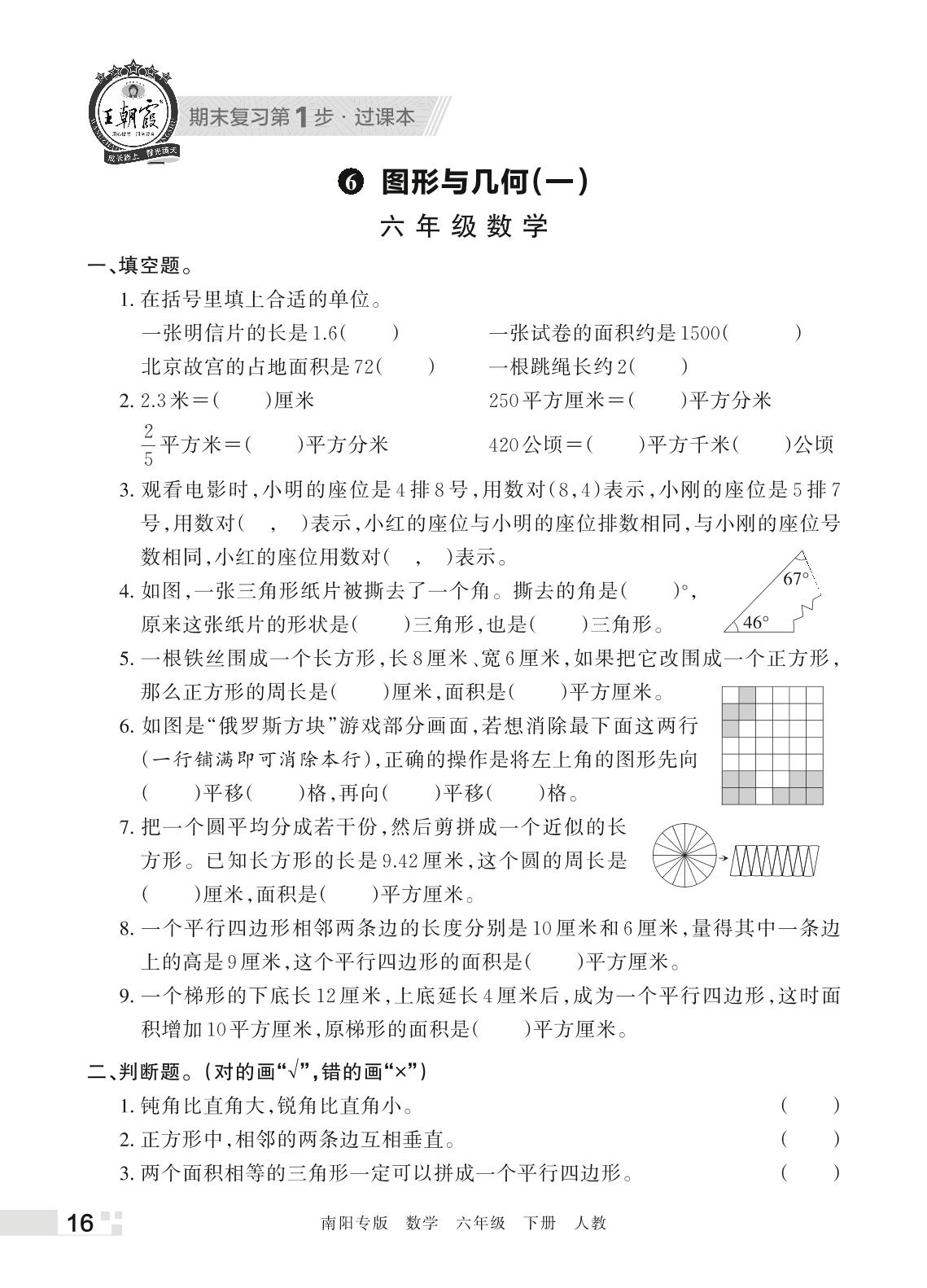 王朝霞期末过课本——6 图形与几何(一)六年级下册数学(人教版)_R220408164108473