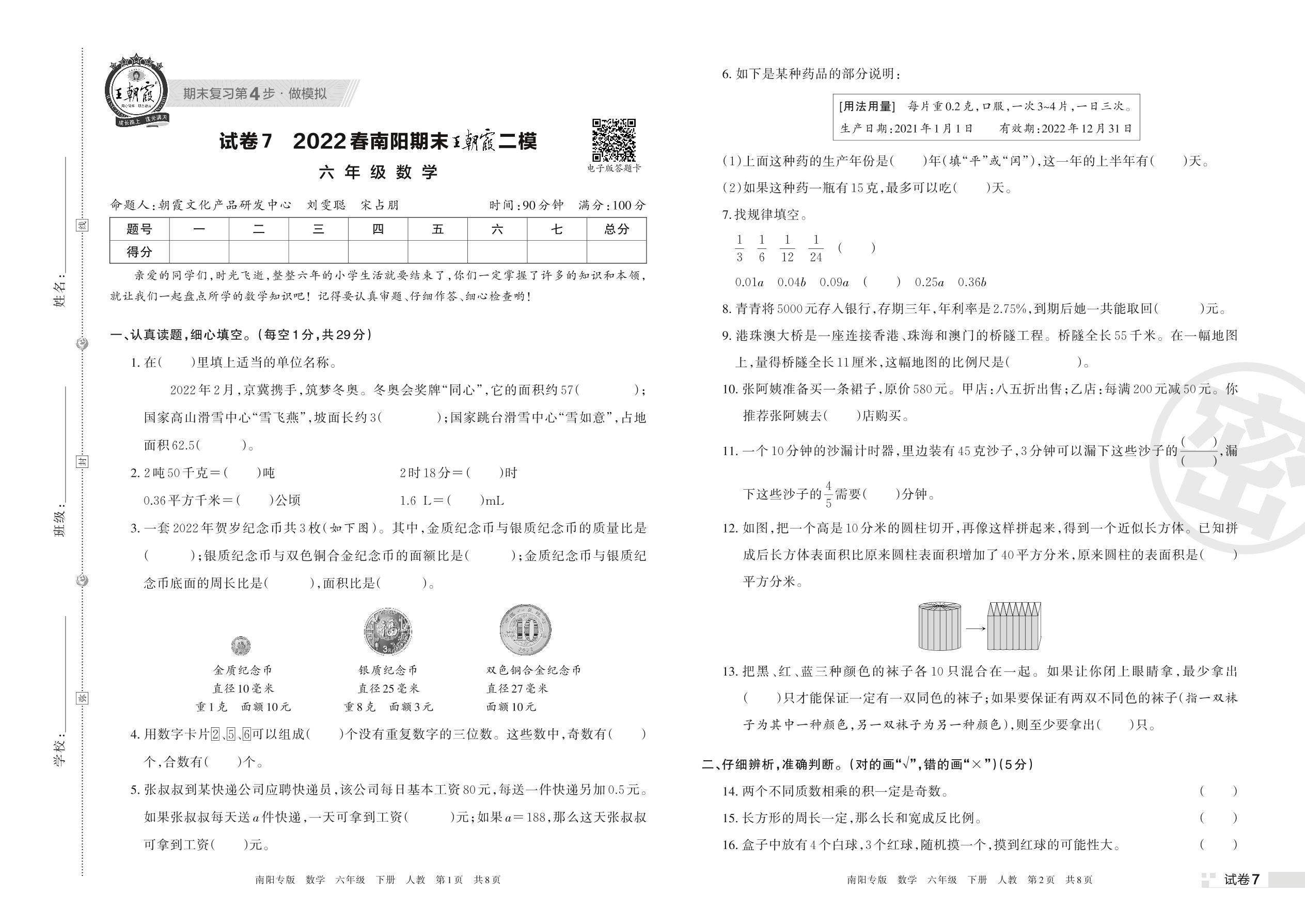 王朝霞期末模拟卷六年级下册数学(人教版)_R220408164109650【7】