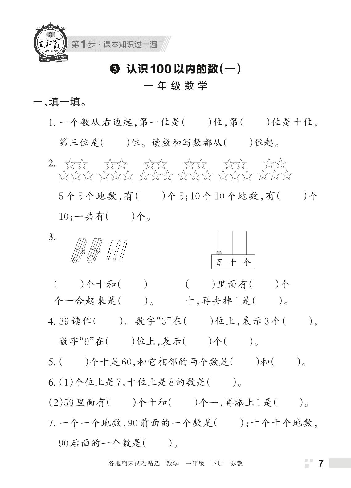 王朝霞期末过课本——3 认识100以内的数(一)一年级下册数学(苏教版)
