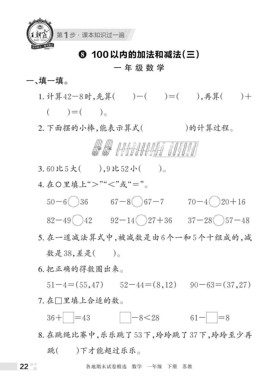 王朝霞期末过课本——8 100以内的加法和减法(三)一年级下册数学(苏教版)