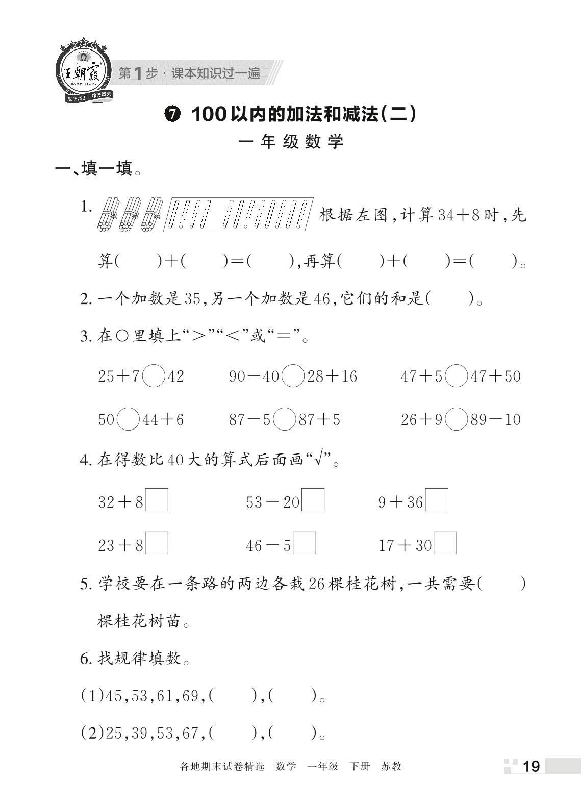 王朝霞期末过课本——7 100以内的加法和减法(二)一年级下册数学(苏教版)