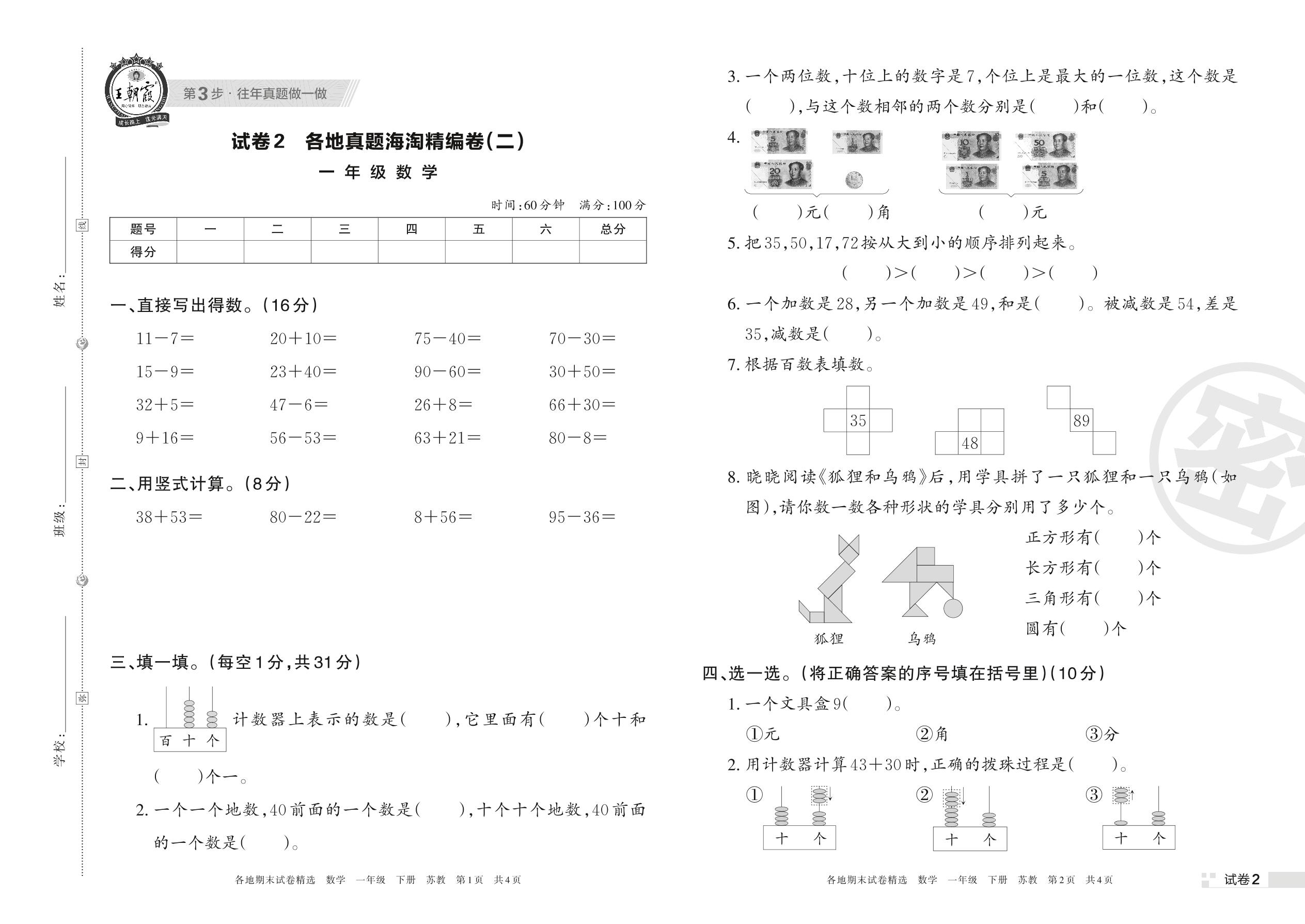 各地真题海淘精编卷(二)一年级下册数学(苏教版)【2】