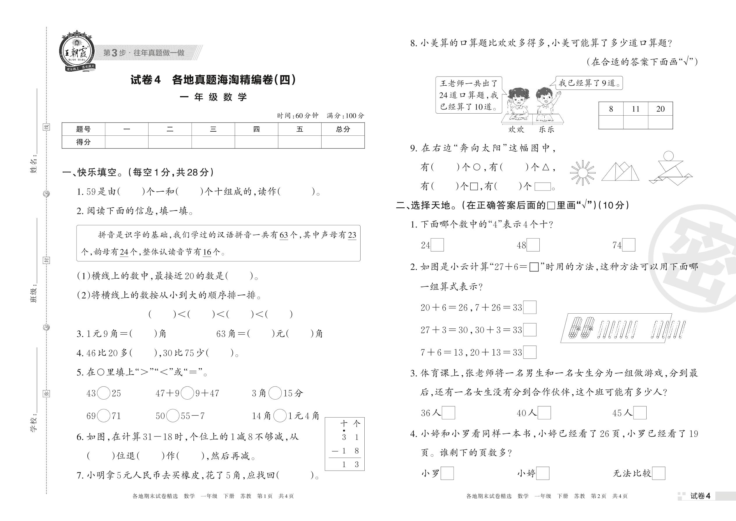 一年级数学苏教版下册期末卷