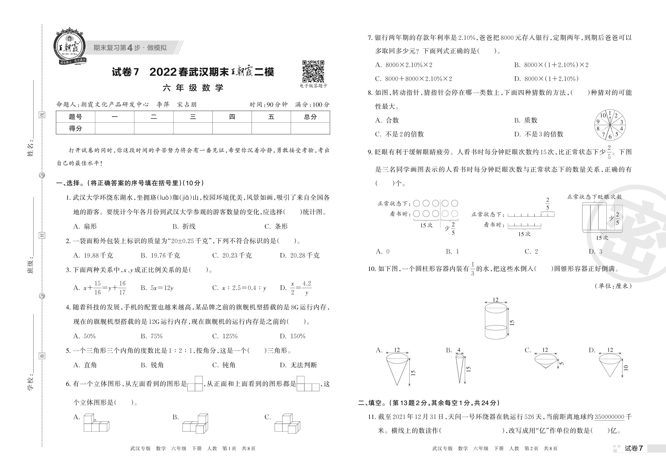 王朝霞期末模拟卷六年级下册数学(人教版)_R220408171652896【7】