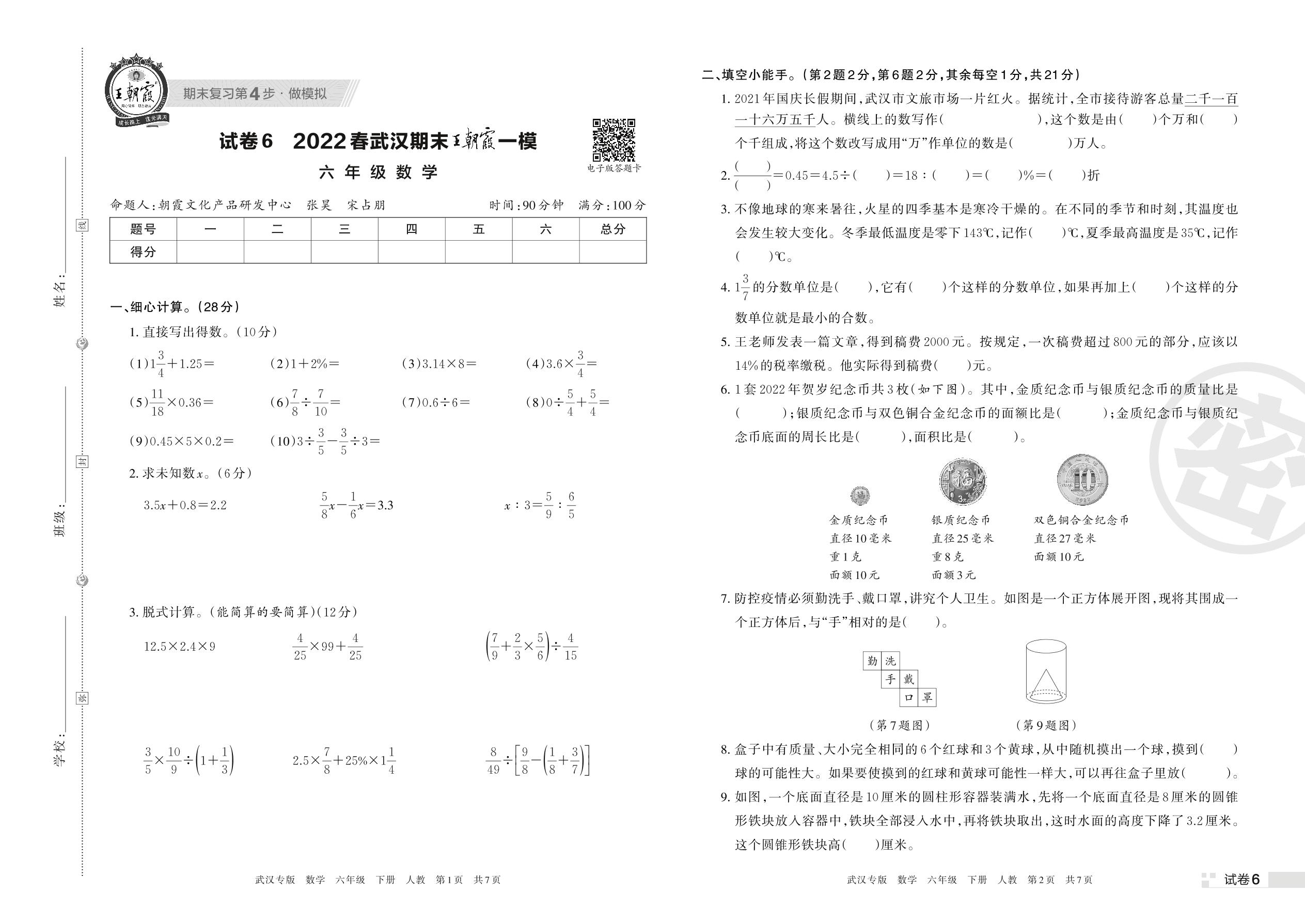 王朝霞期末模拟卷六年级下册数学(人教版)_R220408171652076【6】