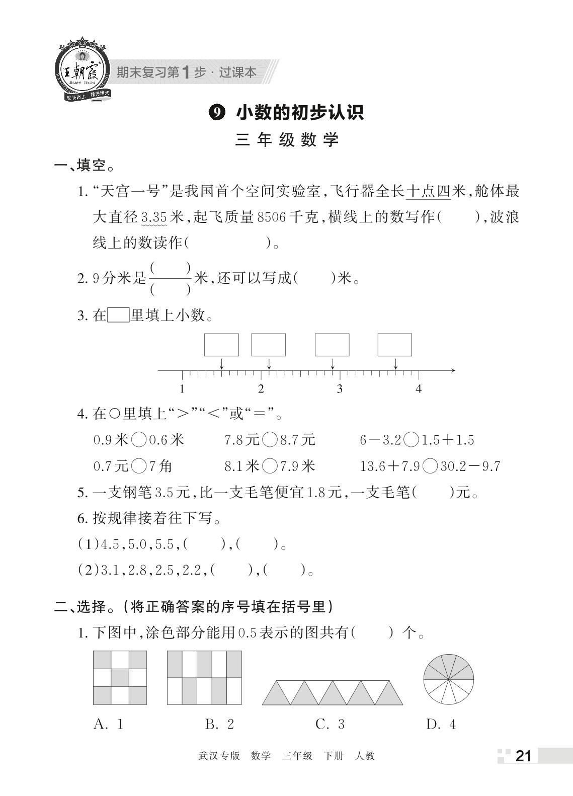 王朝霞期末过课本——9 小数的初步认识三年级下册数学(人教版)_R220408173556656