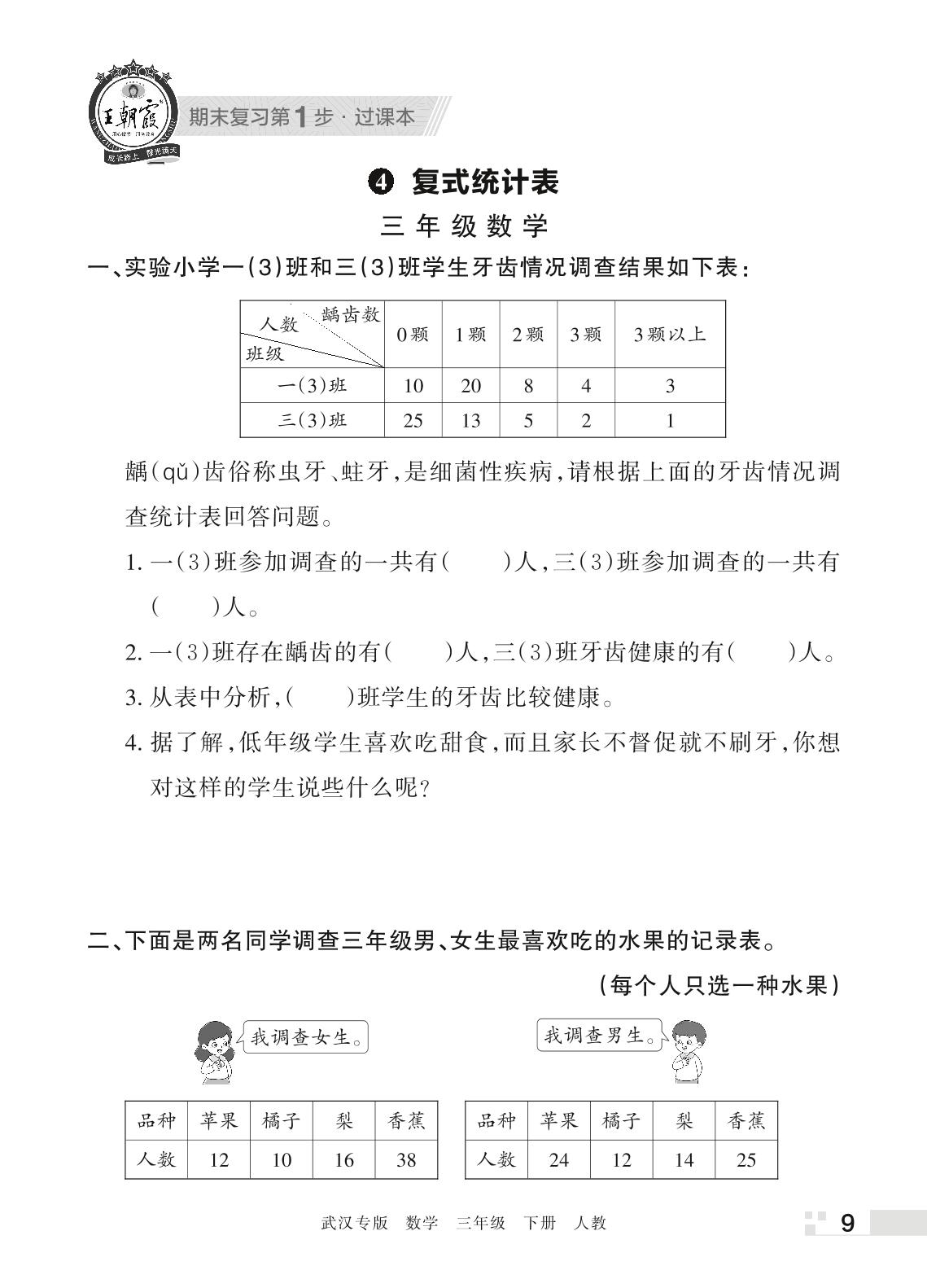 王朝霞期末过课本——4 复式统计表三年级下册数学(人教版)_R220408173556677