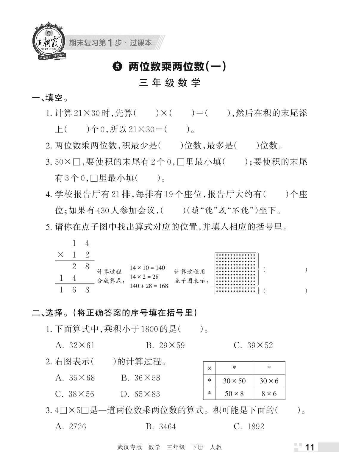 王朝霞期末过课本——5 两位数乘两位数(一)三年级下册数学(人教版)_R220408173557543