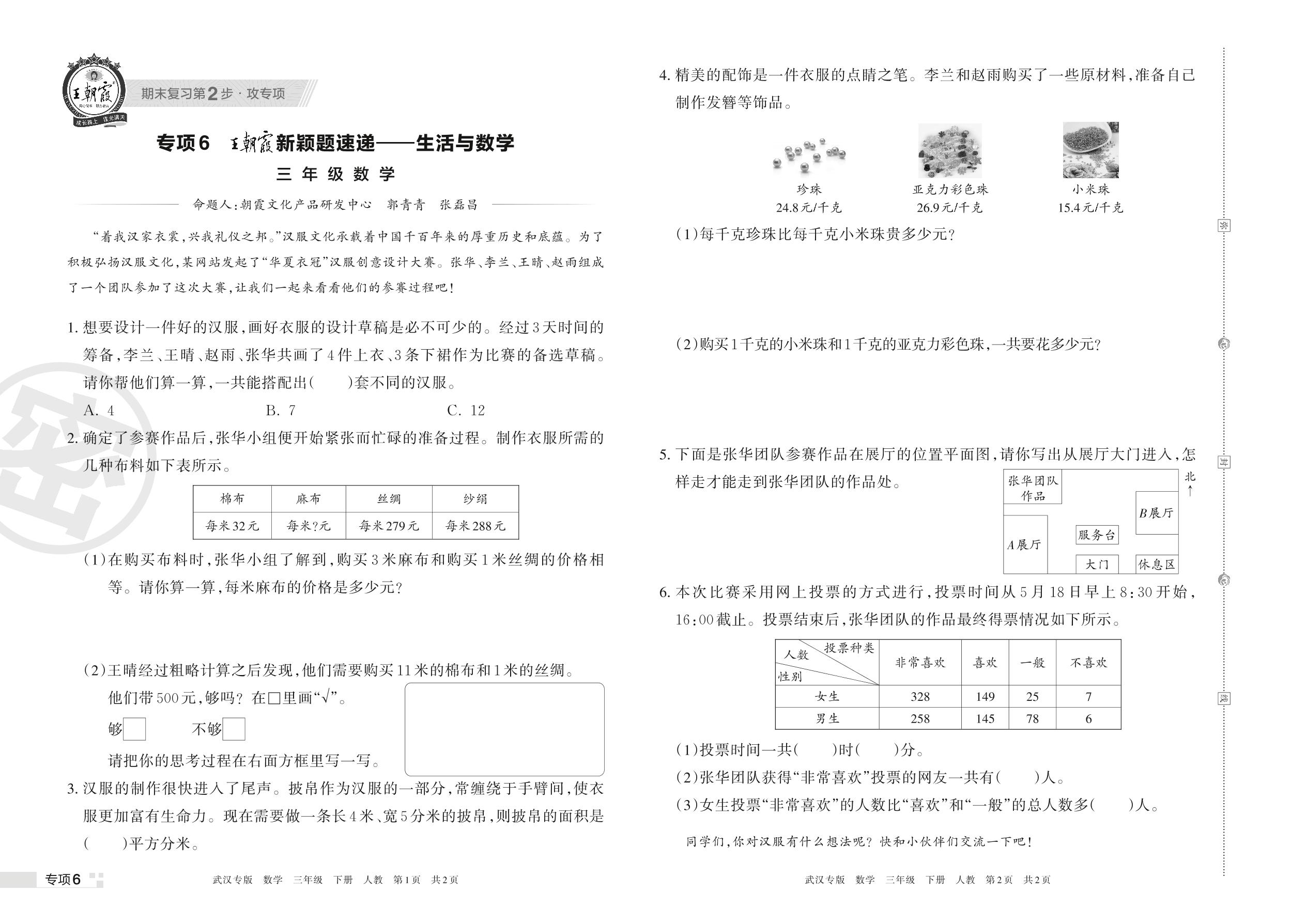 王朝霞期末专项卷——新颖题速递:生活与数学三年级下册数学(人教版)_R220408173557149【6】