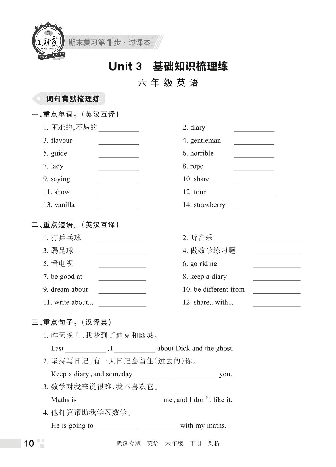 王朝霞期末过课本——Unit 3 基础知识梳理练六年级下册英语(剑桥版)