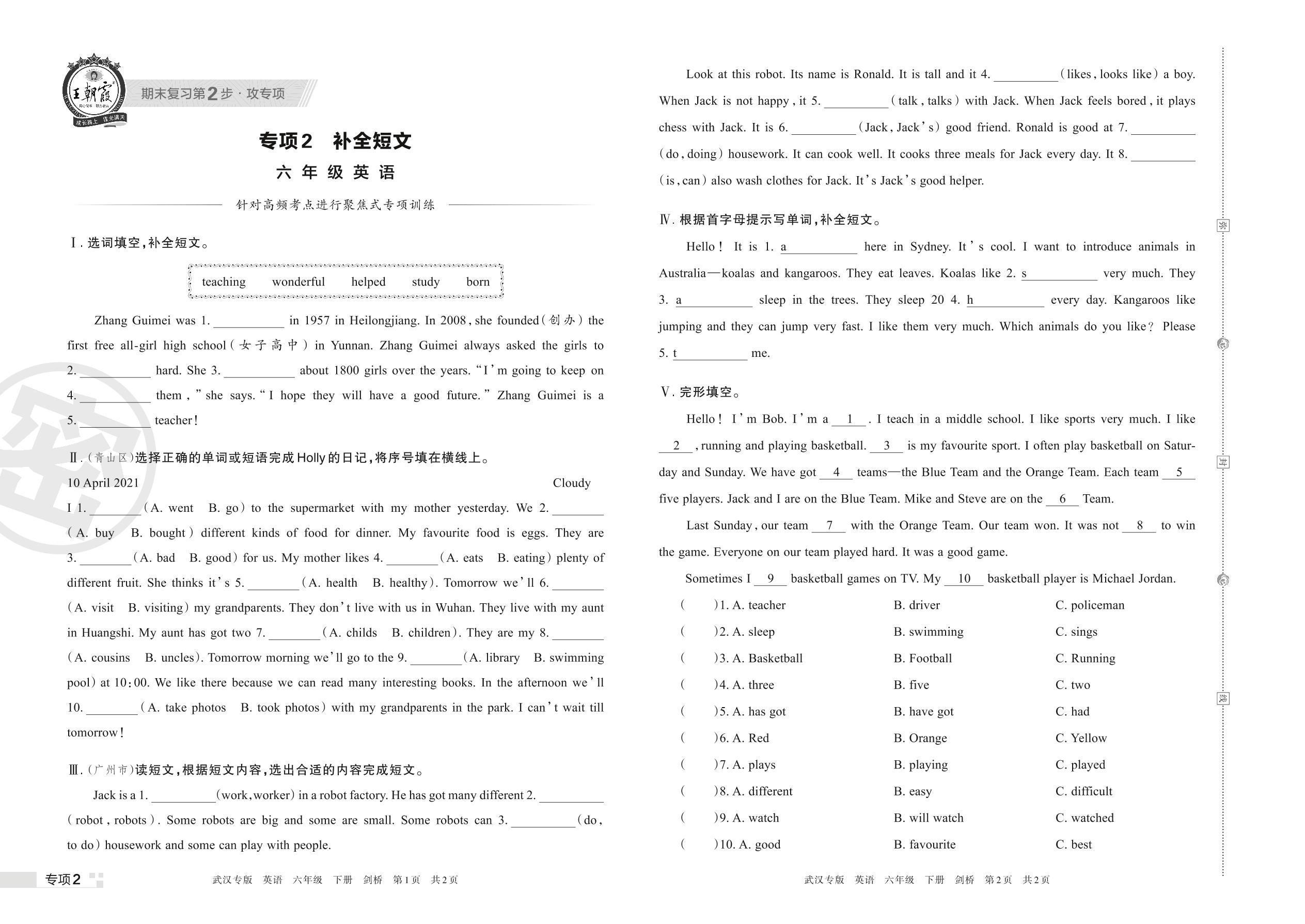 王朝霞期末专项卷——补全短文六年级下册英语(剑桥版)【2】