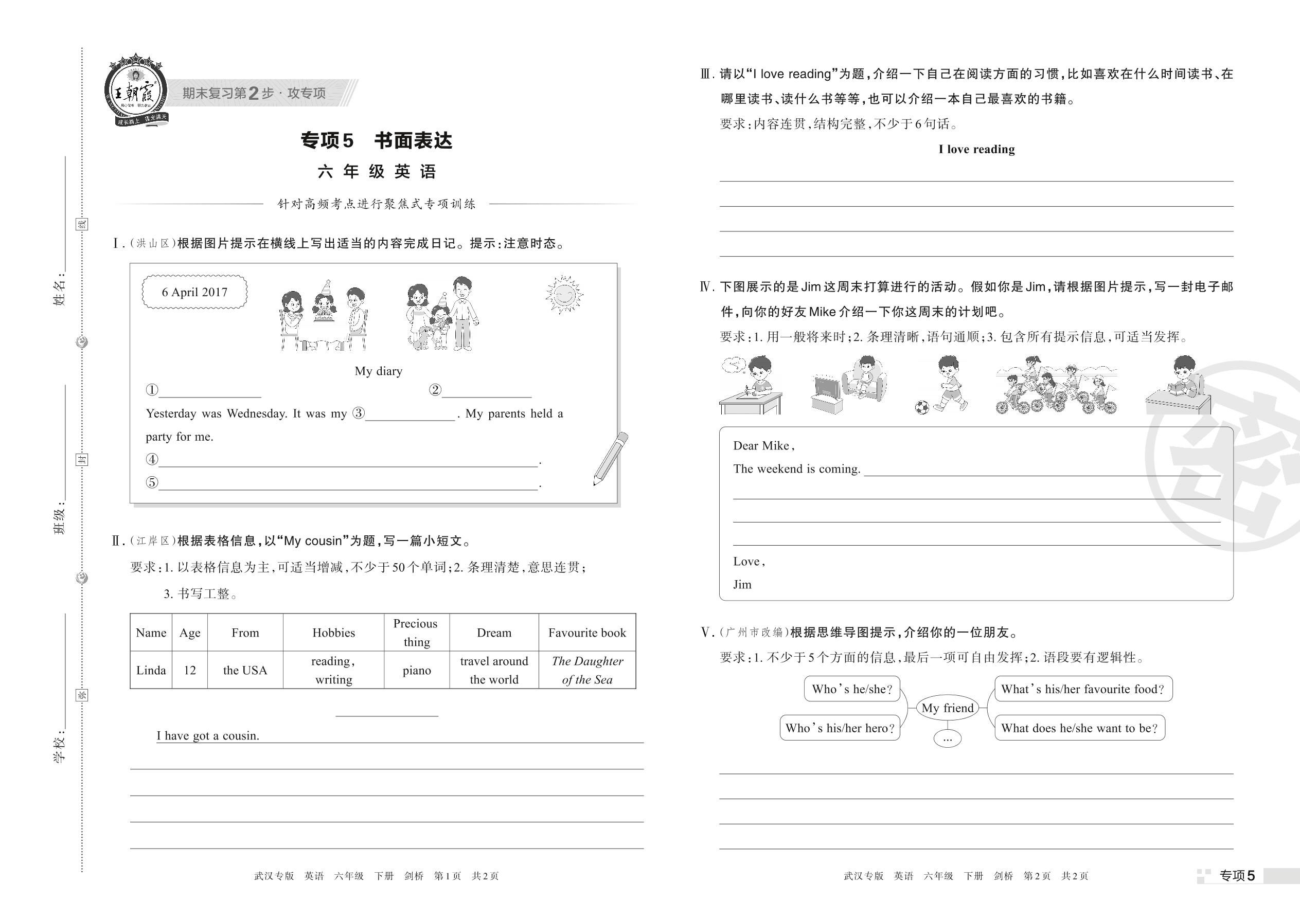 王朝霞期末专项卷——书面表达六年级下册英语(剑桥版)【5】