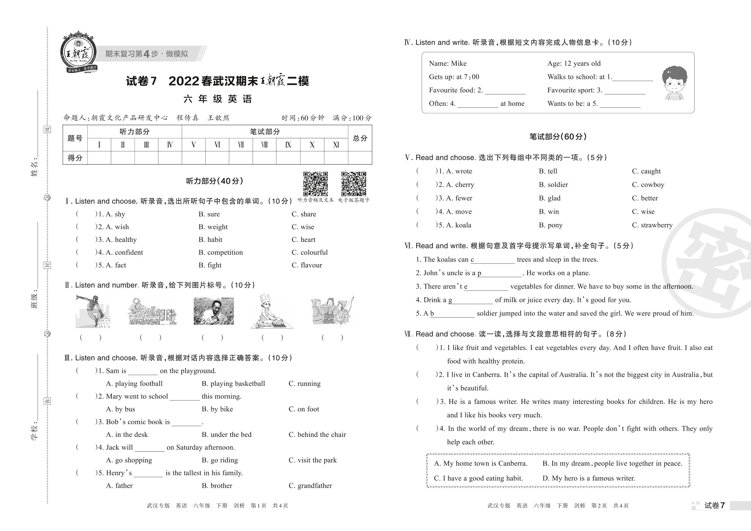 王朝霞期末模拟卷六年级下册英语(剑桥版)【7】