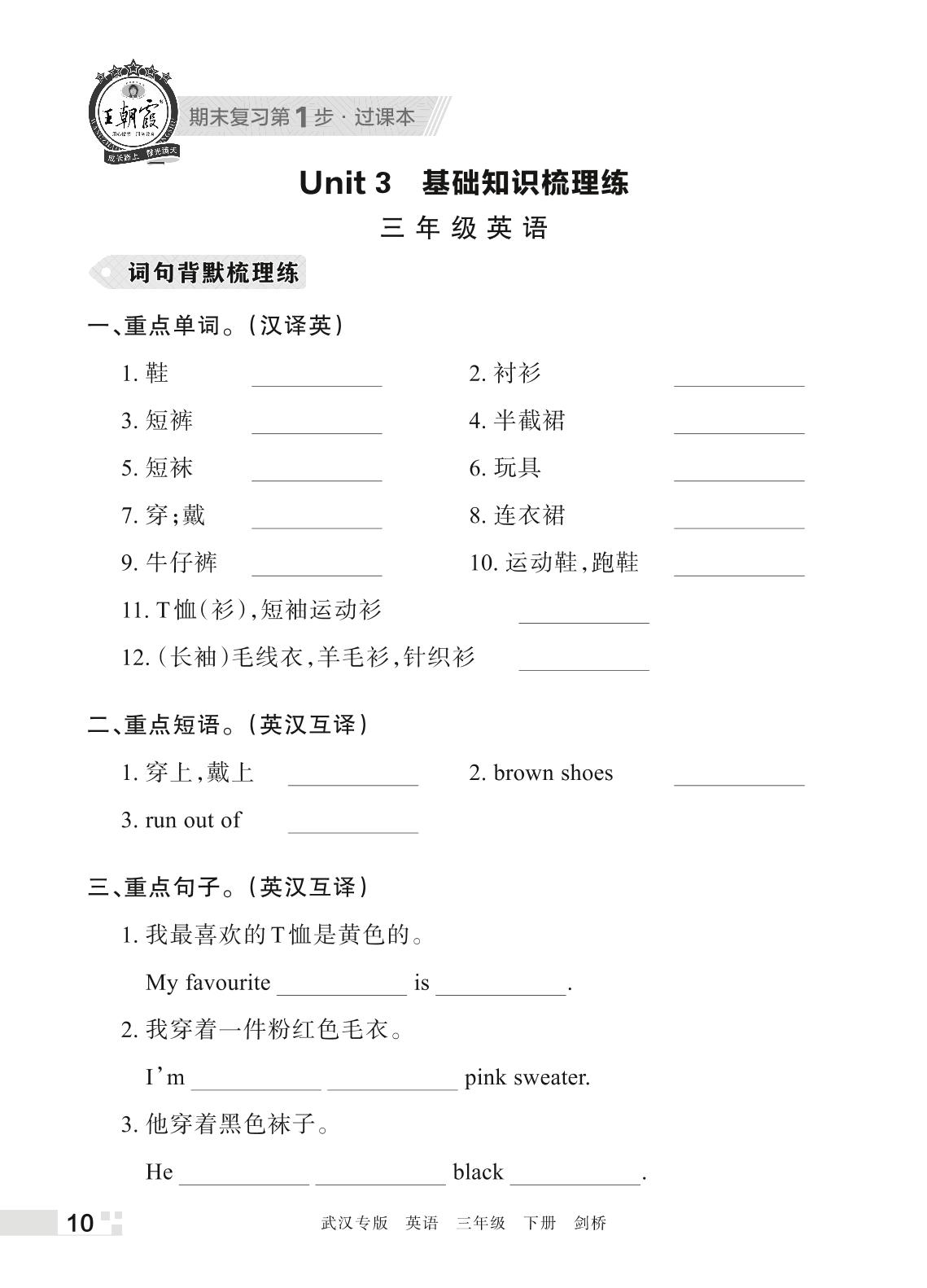 王朝霞期末过课本——Unit 3 基础知识梳理练三年级下册英语(剑桥版)
