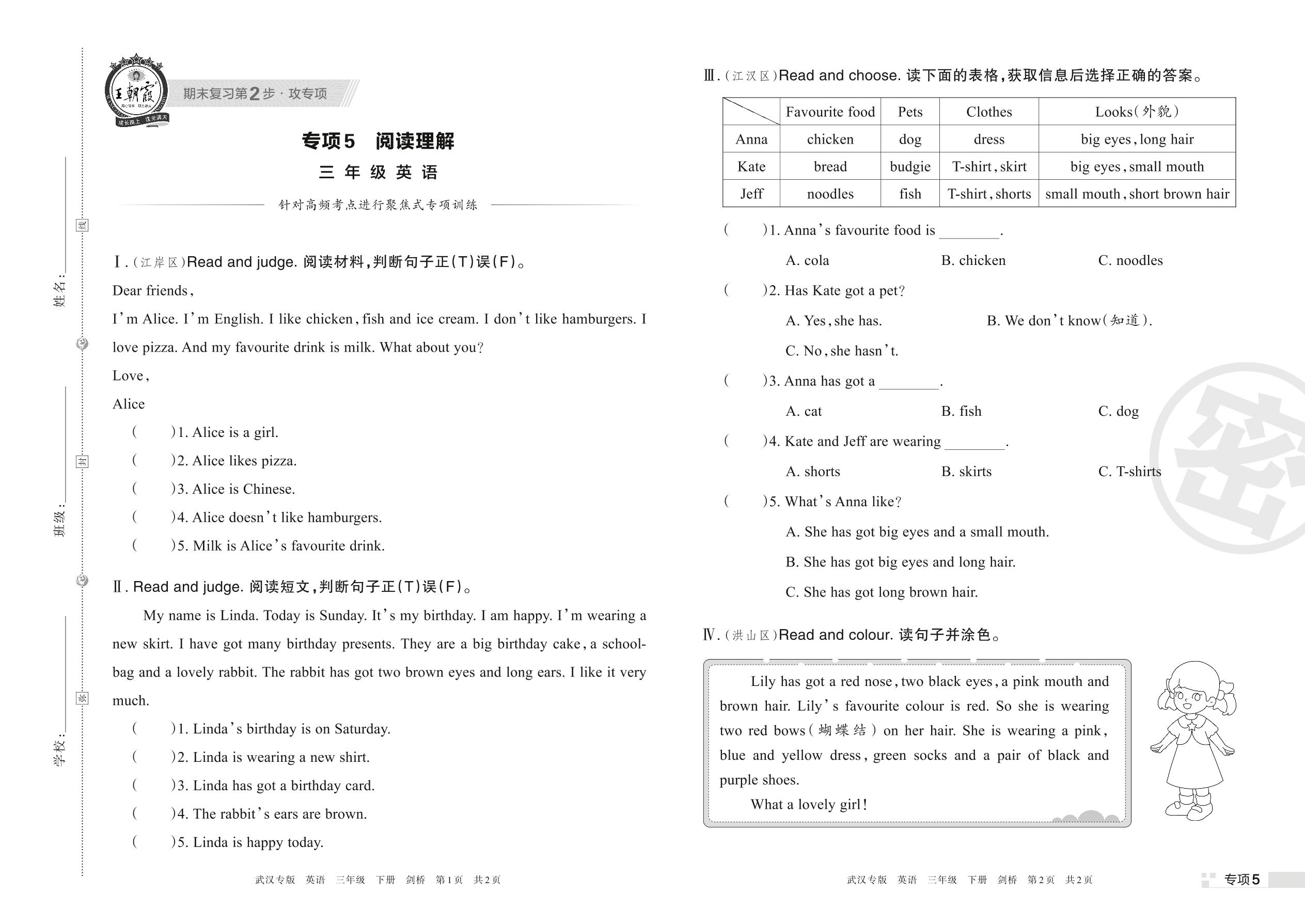 王朝霞期末专项卷——阅读理解三年级下册英语(剑桥版)【5】