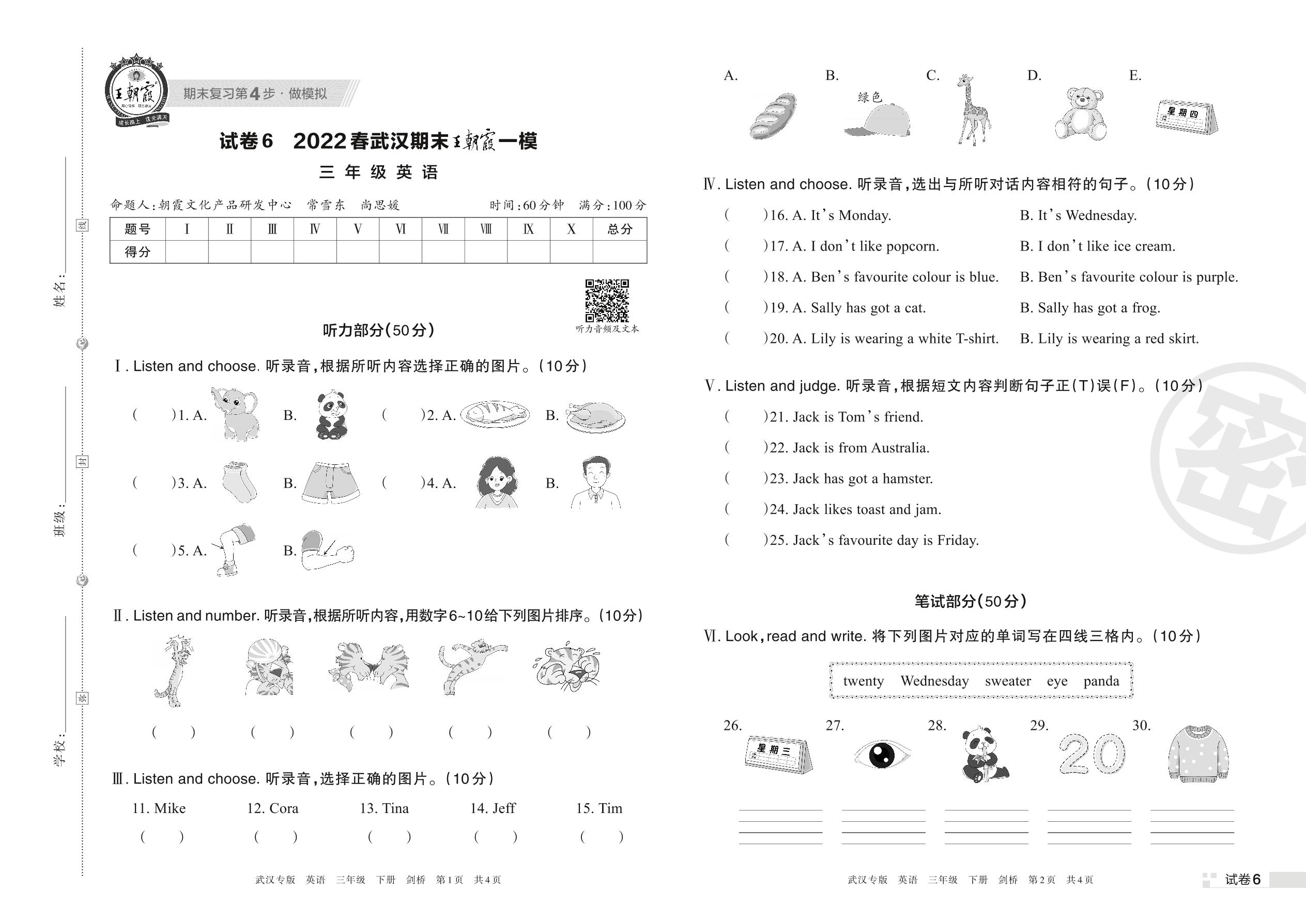 王朝霞期末模拟卷三年级下册英语(剑桥版)【6】