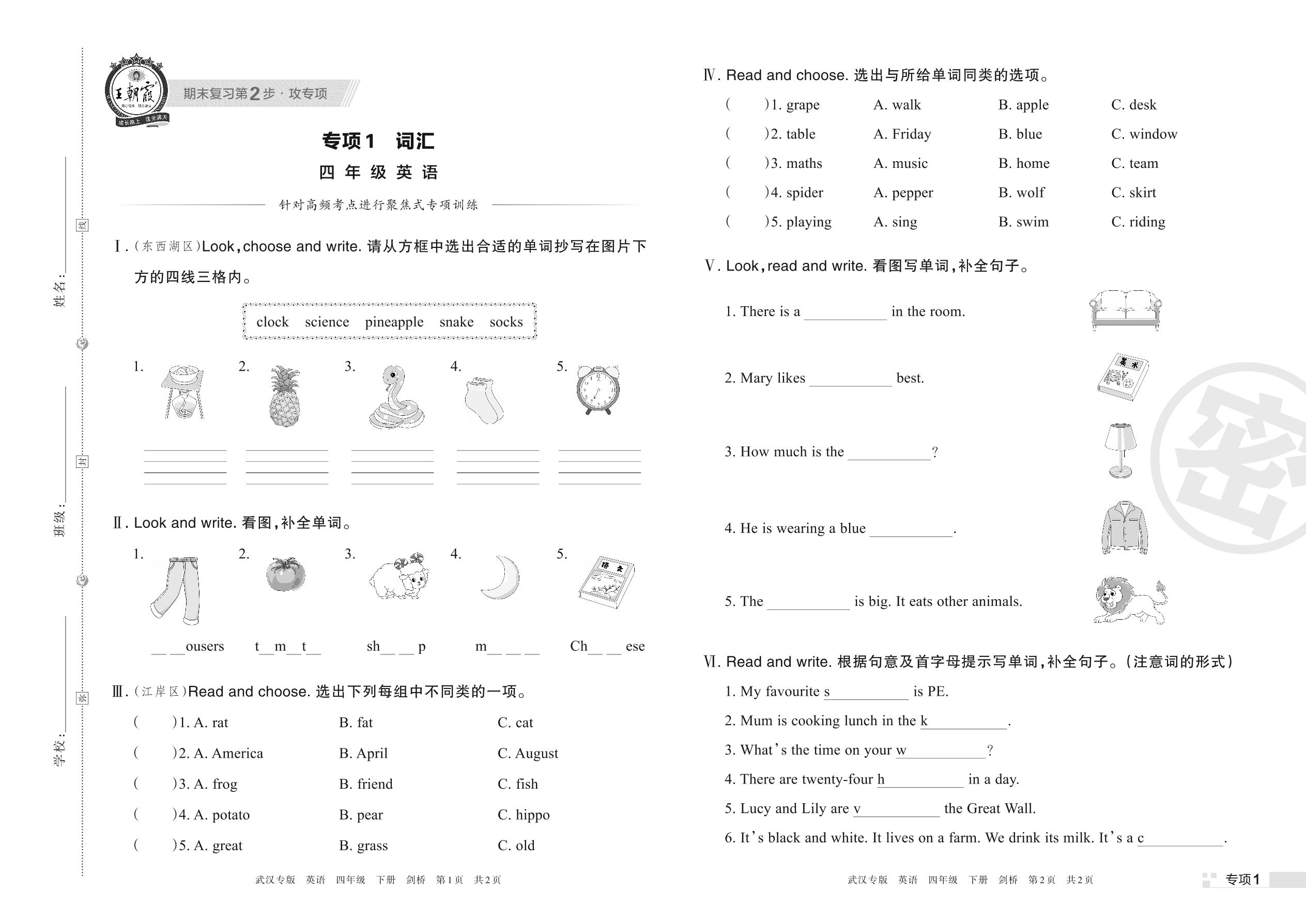 王朝霞期末专项卷——词汇四年级下册英语(剑桥版)【1】