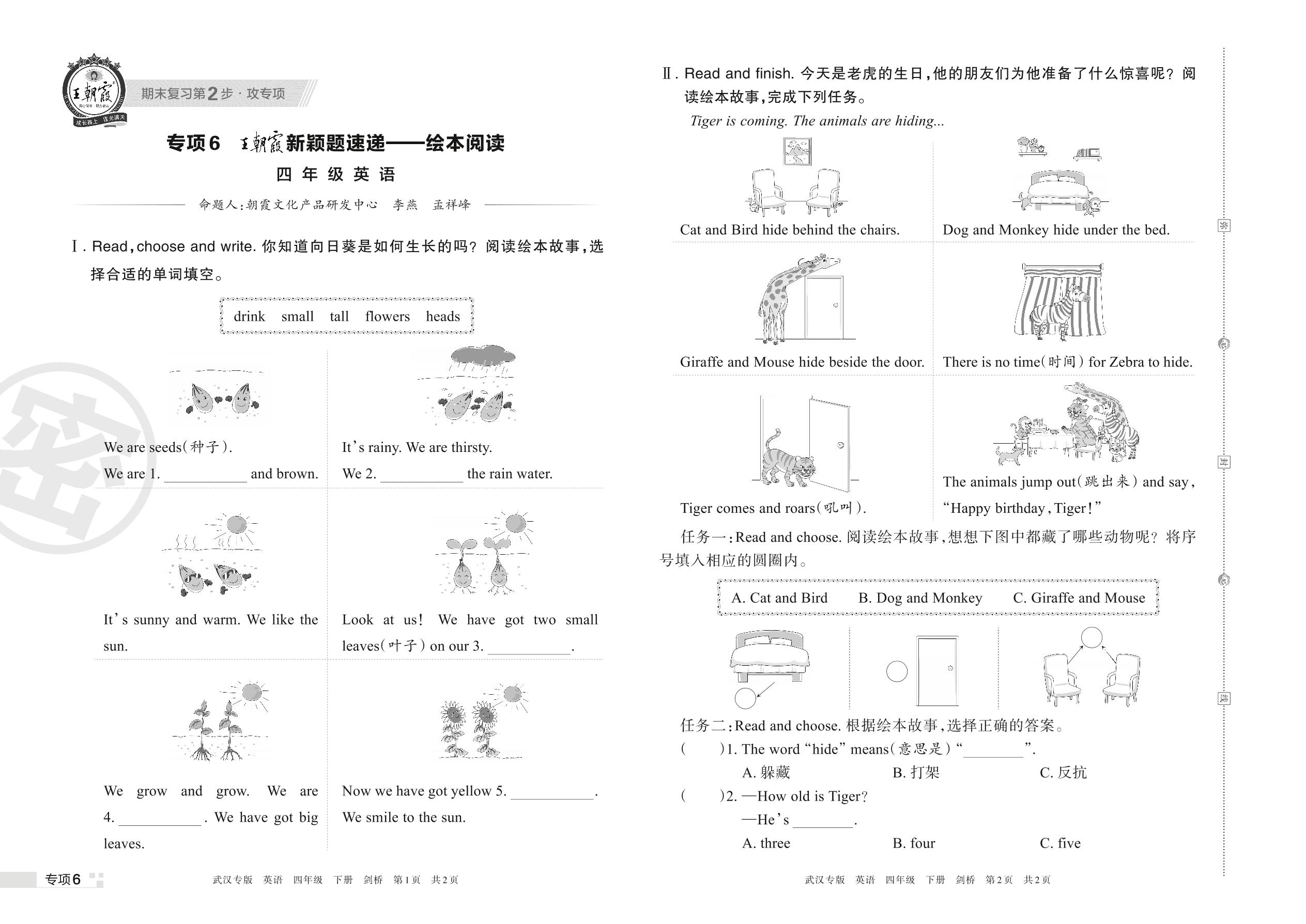 王朝霞期末专项卷——新颖题速递:绘本阅读四年级下册英语(剑桥版)【6】