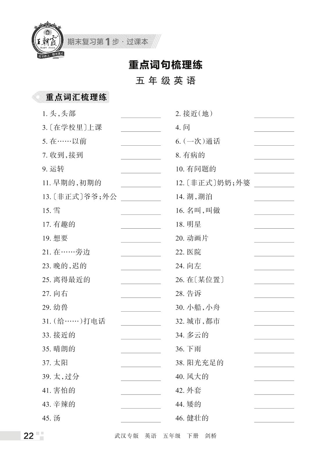 王朝霞期末过课本——重点词句梳理练五年级下册英语(剑桥版)