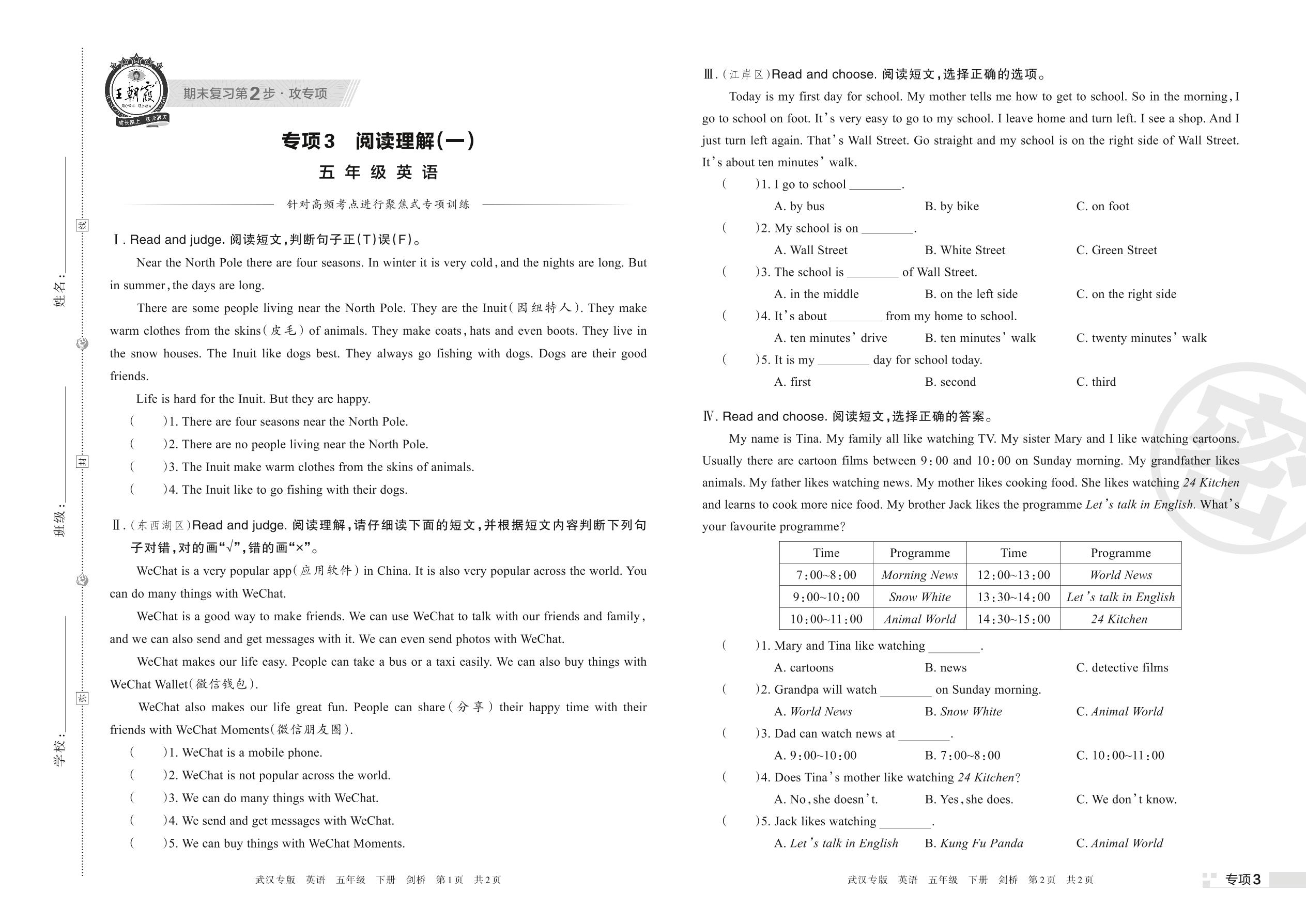 王朝霞期末专项卷——阅读理解(一)五年级下册英语(剑桥版)【3】