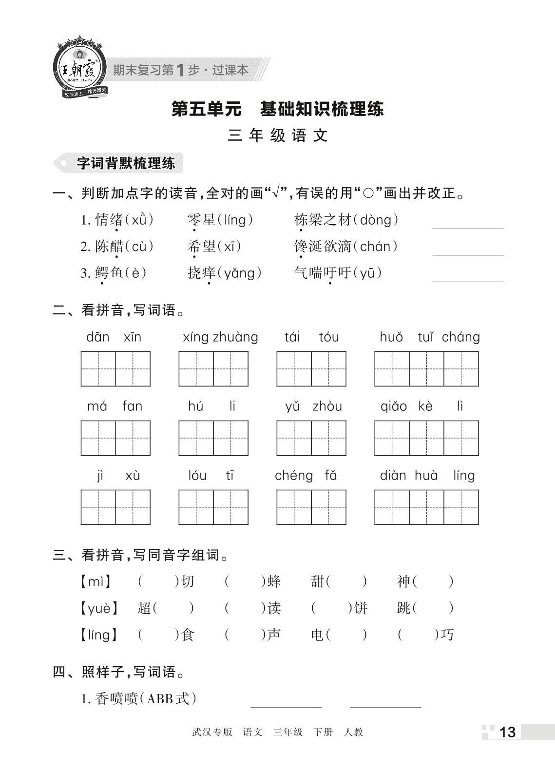 王朝霞期末过课本——第五单元 基础知识梳理练三年级下册语文(人教版)_R220409171039320