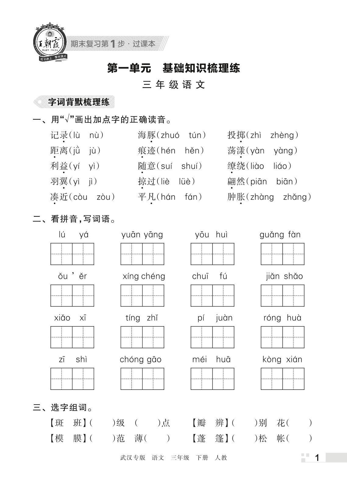 王朝霞期末过课本——第一单元 基础知识梳理练三年级下册语文(人教版)_R220409171039402