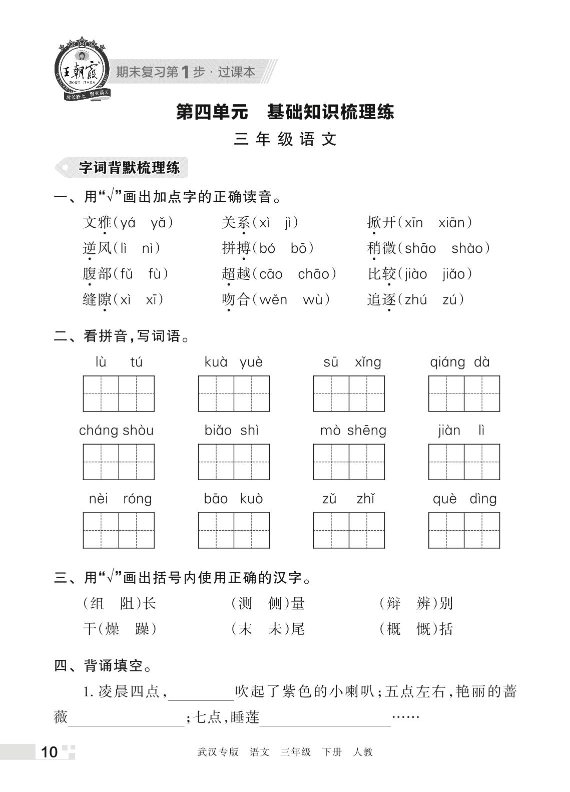 王朝霞期末过课本——第四单元 基础知识梳理练三年级下册语文(人教版)_R220409171040107