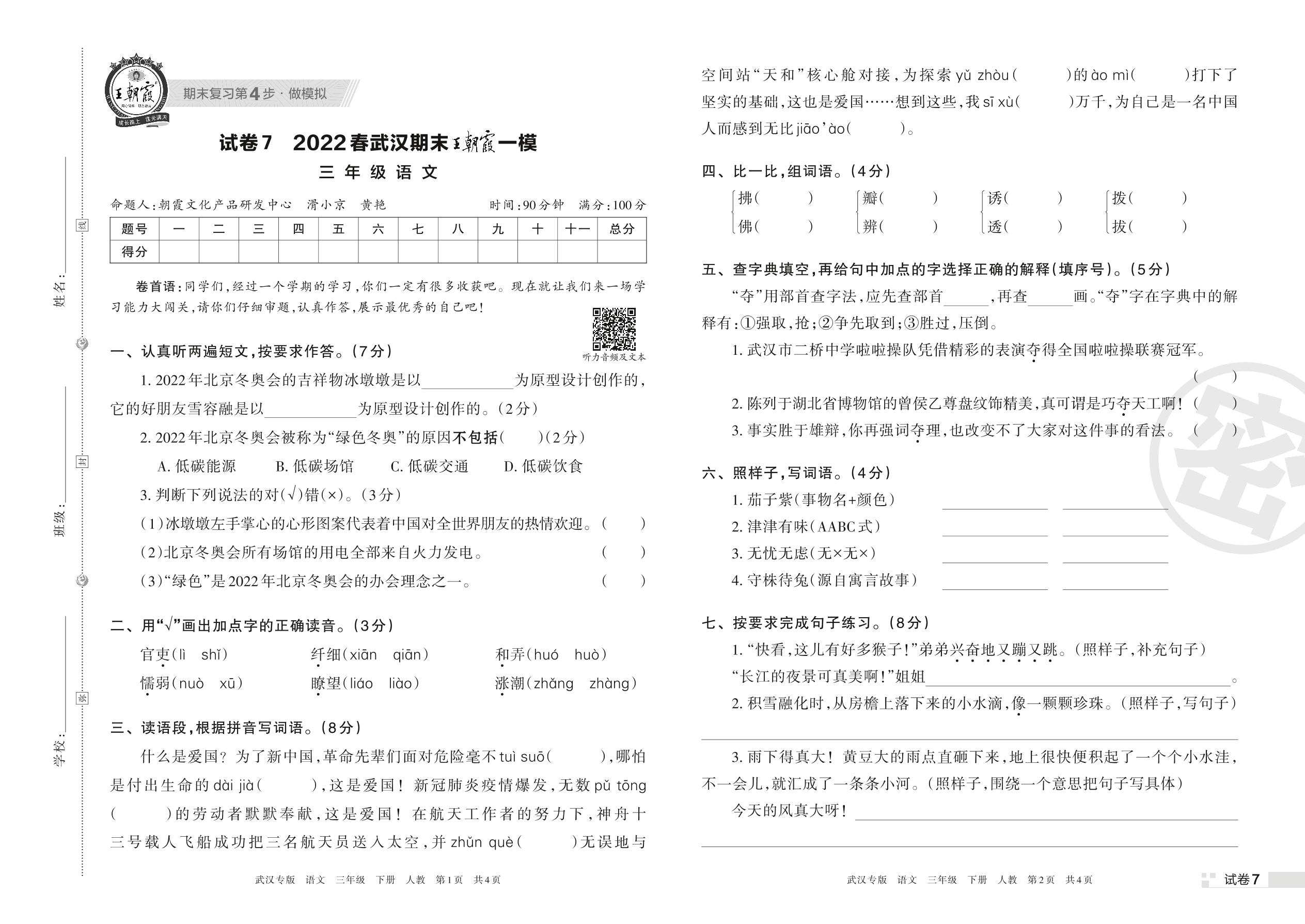 王朝霞期末模拟卷三年级下册语文(人教版)_R220409171041457【7】