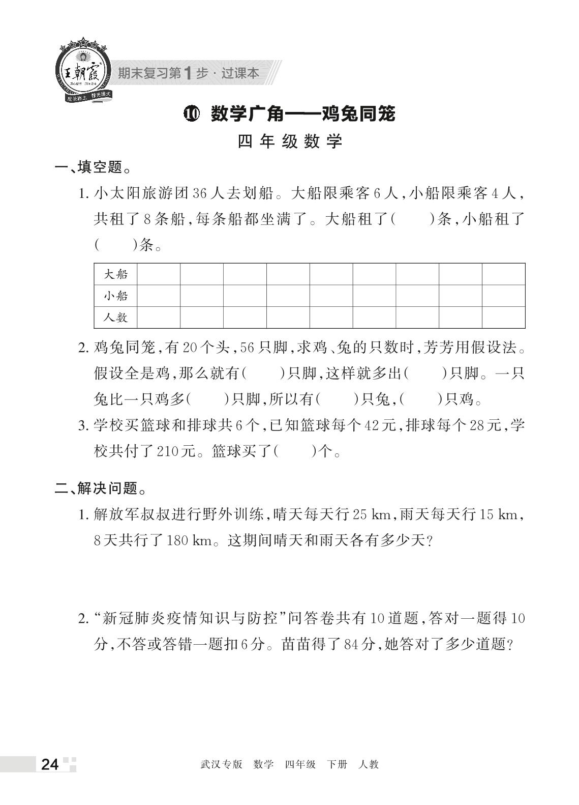 王朝霞期末过课本——10 数学广角:鸡兔同笼四年级下册数学(人教版)_R220409172217314