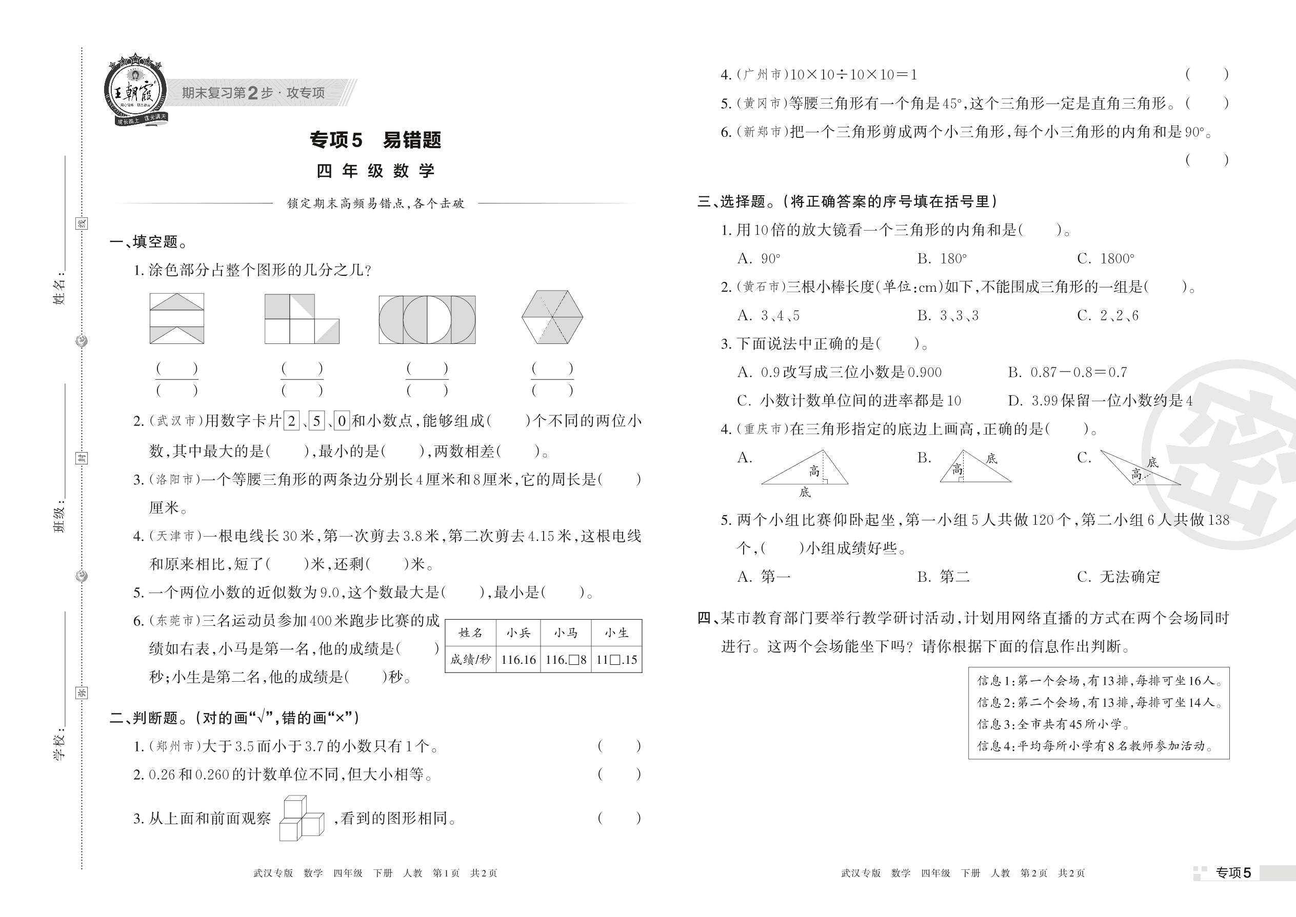 王朝霞期末专项卷——易错题四年级下册数学(人教版)_R220409172218087【5】