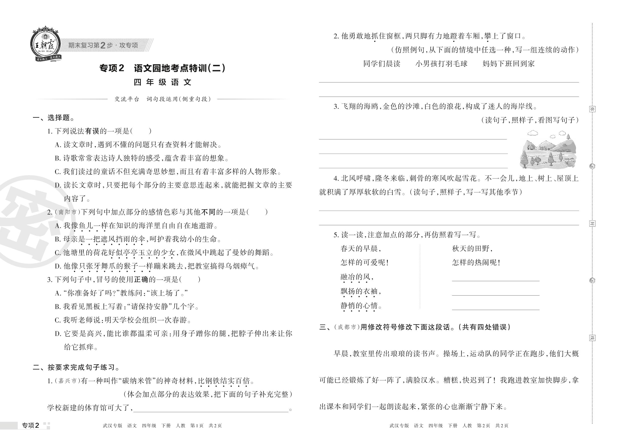 王朝霞期末专项卷——语文园地考点特训(二)四年级下册语文(人教版)_R220409173046950【2】