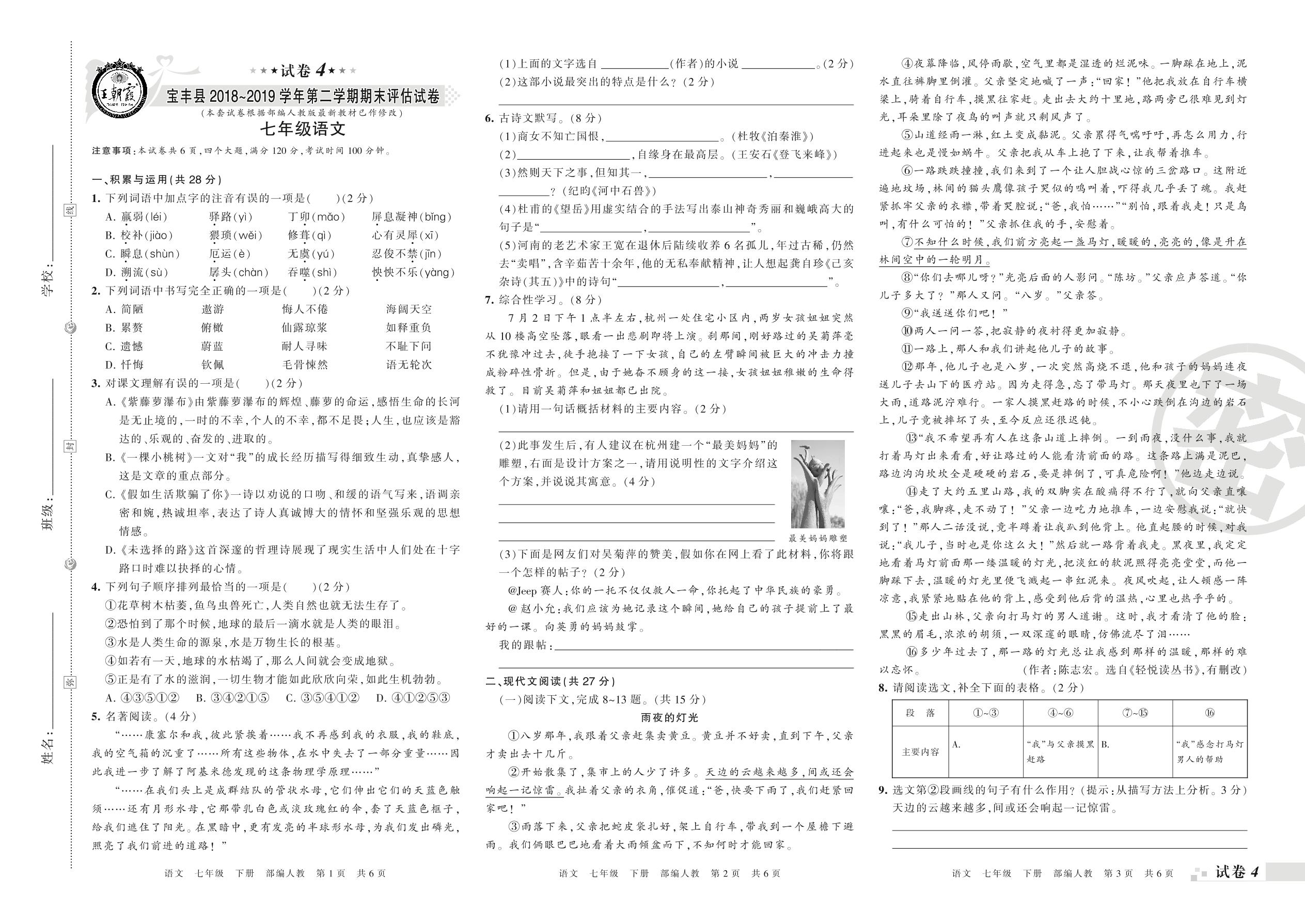 2018-2019学年第二学期平顶山市宝丰县七年级语文试卷(人教版)【4】