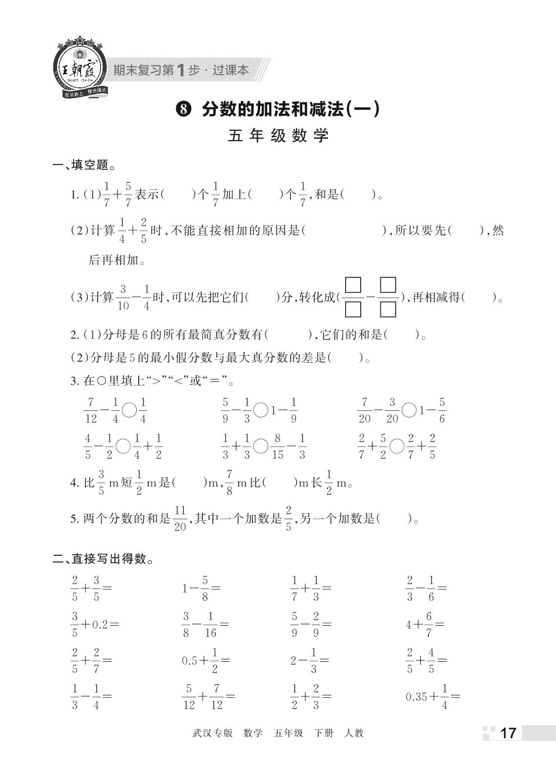 王朝霞期末过课本——8 分数的加法和减法(一)五年级下册数学(人教版)_R220409174214518