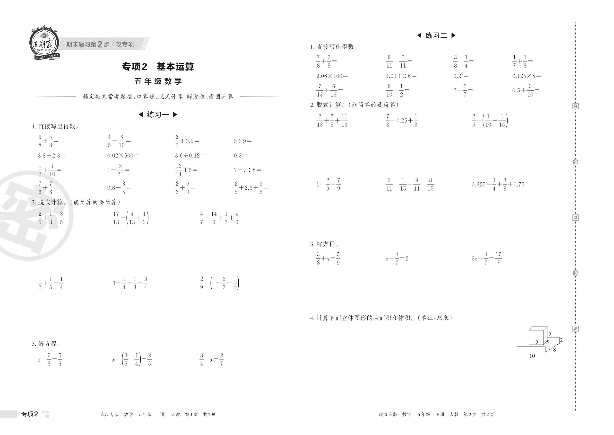 王朝霞期末专项卷——基本运算五年级下册数学(人教版)_R220409174215240【2】