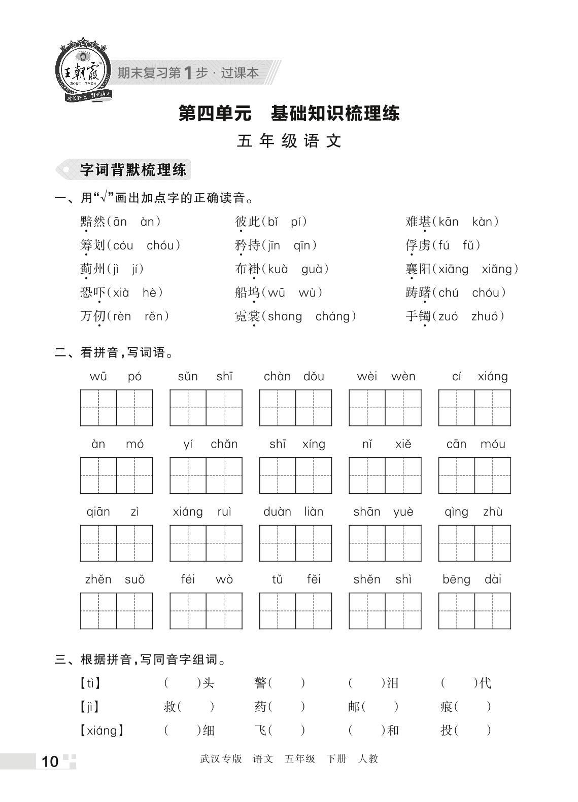 王朝霞期末过课本——第四单元 基础知识梳理练五年级下册语文(人教版)_R220411091343592
