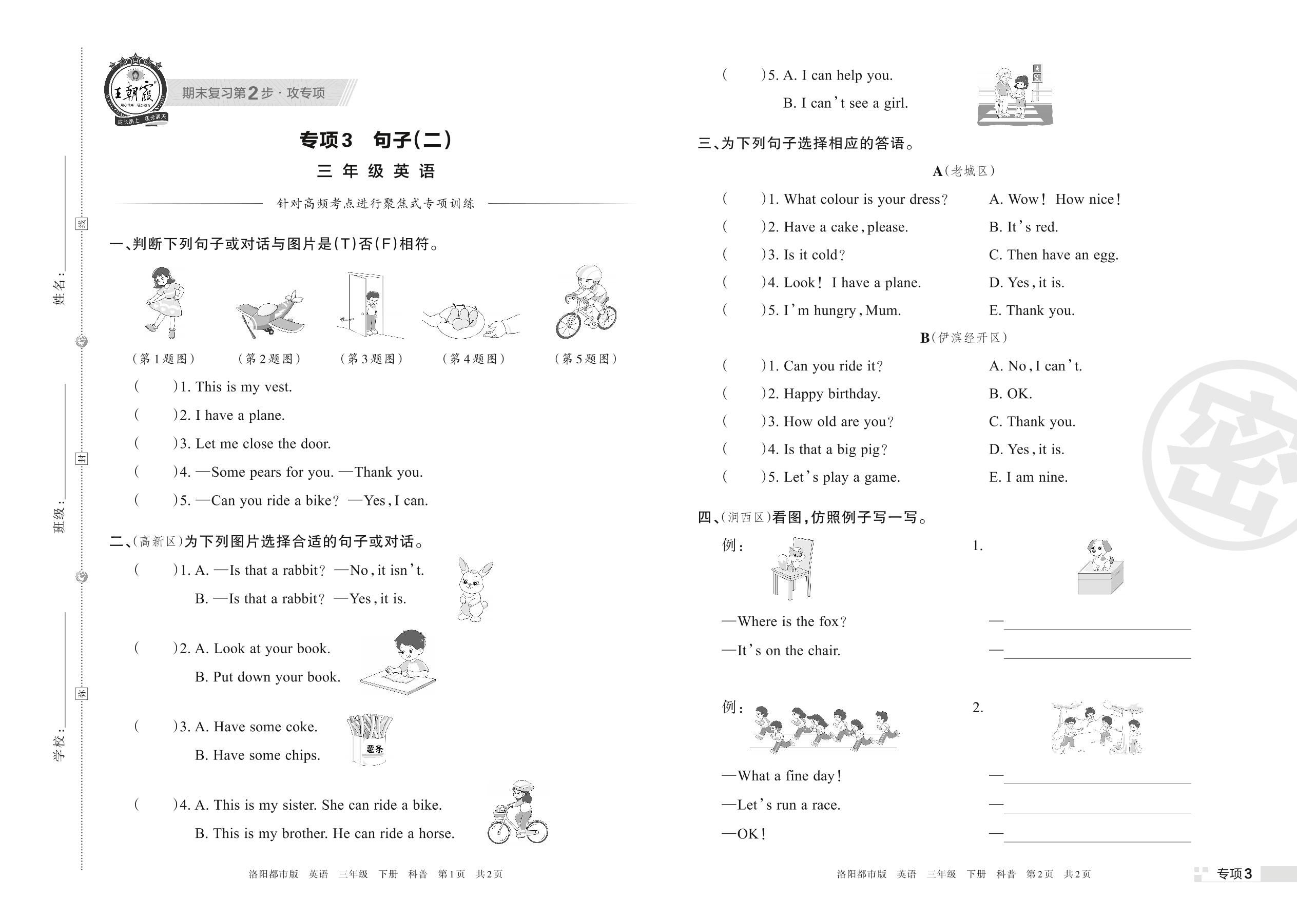 王朝霞期末专项卷——句子(二)三年级下册英语(科普版)_R220411094701237【3】