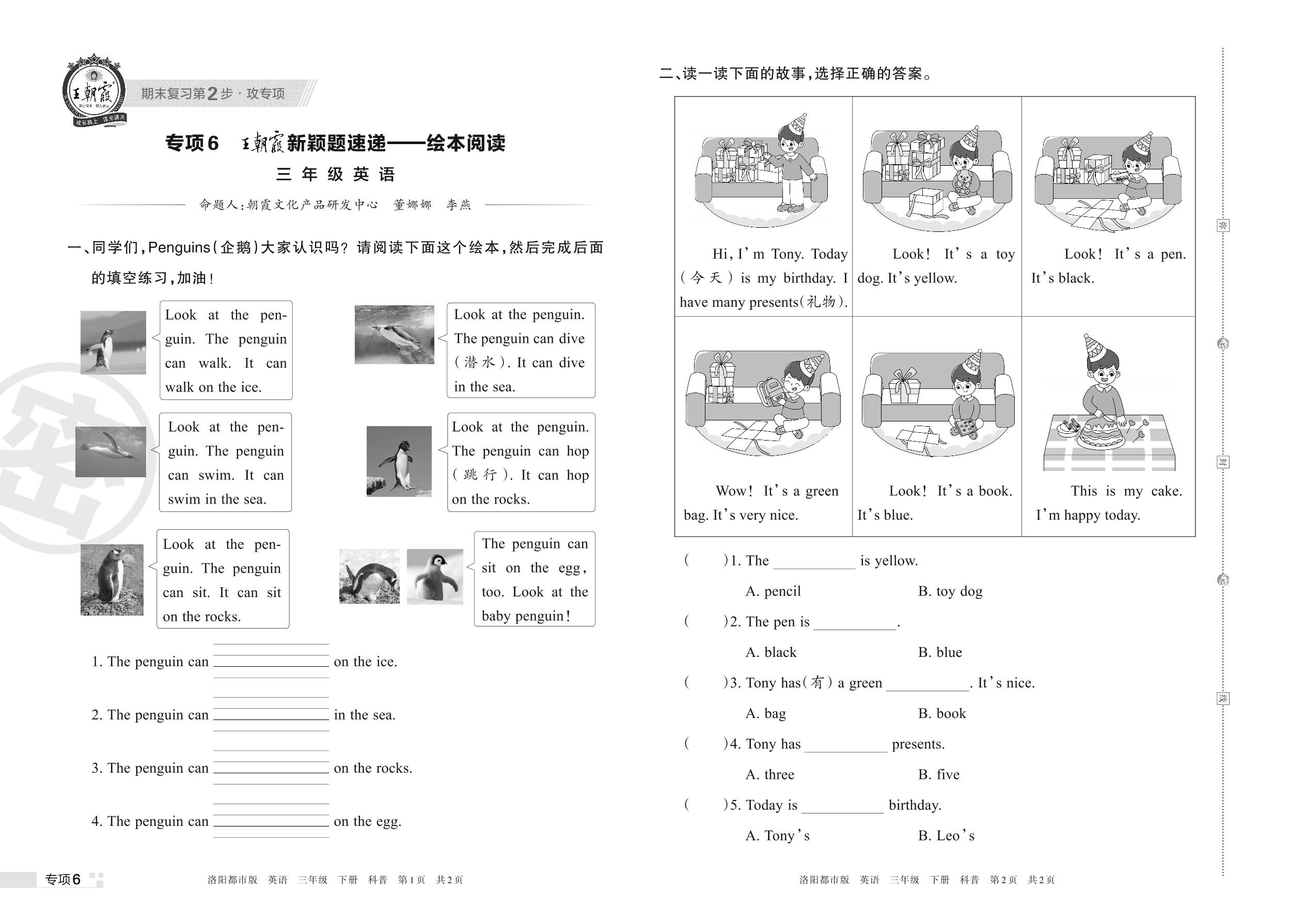 王朝霞期末专项卷——新颖题速递:绘本阅读三年级下册英语(科普版)【6】
