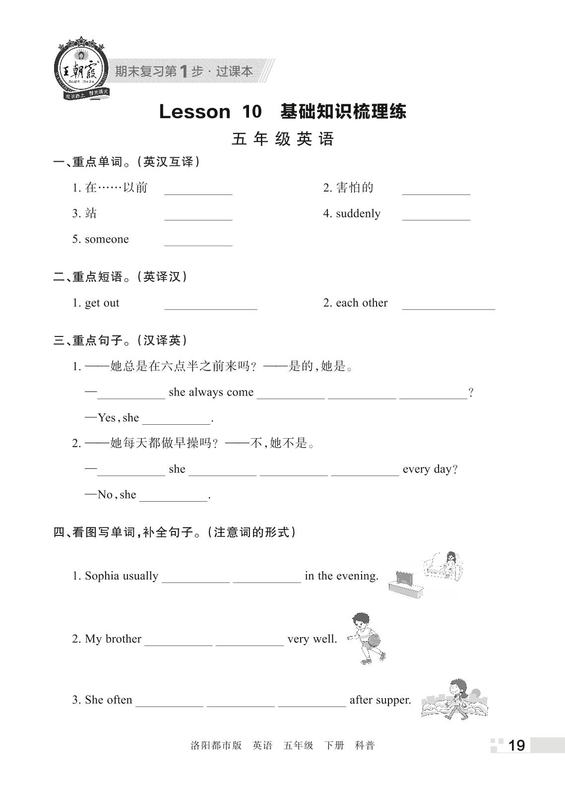王朝霞期末过课本——Lesson 10 基础知识梳理练五年级下册英语(科普版)
