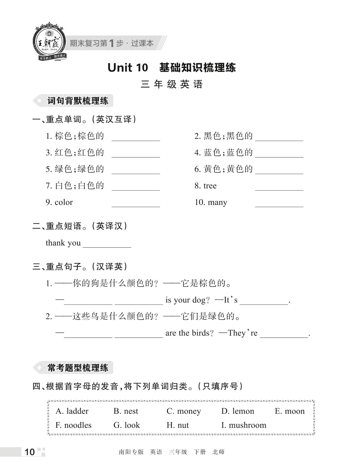 王朝霞期末过课本——Unit 10 基础知识梳理练三年级下册英语(北师版)