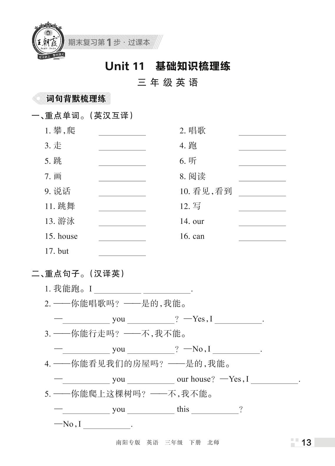 王朝霞期末过课本——Unit 11 基础知识梳理练三年级下册英语(北师版)