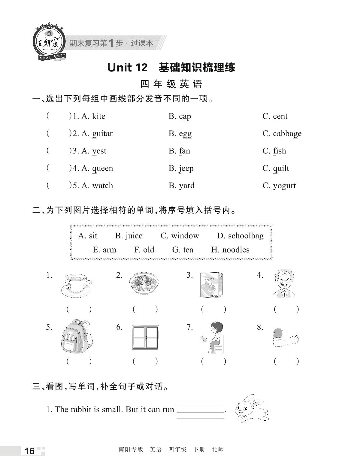 王朝霞期末过课本——Unit 12 基础知识梳理练四年级下册英语(北师版)